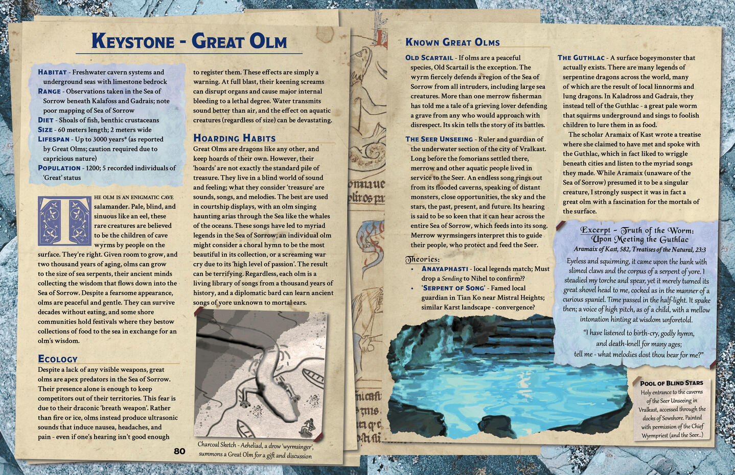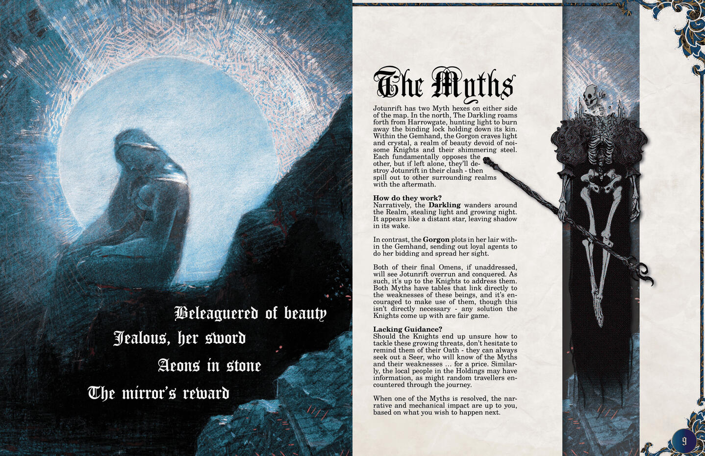 I've written and designed a range of Indie TTRPG projects, including adventures for Mappa Mundi, an introductory Realm for Mythic Bastionland, and supplemental missions and extra vampires for the rip-roaring Eat The Reich.Pictured - Spreads from an unreleased personal project on fantasy ecology, and p.8-9 from Jotunrift, for Mythic Bastionland.